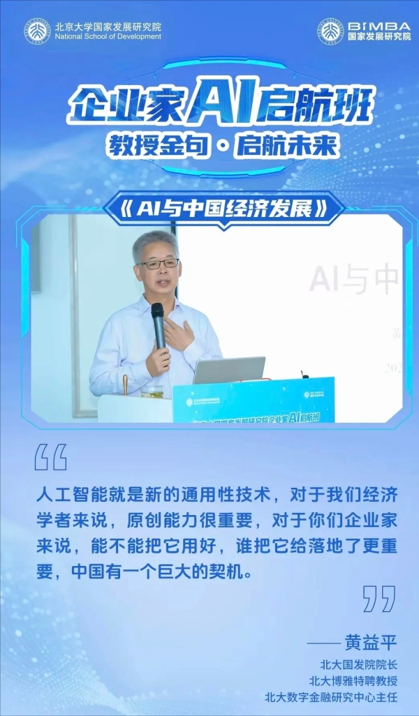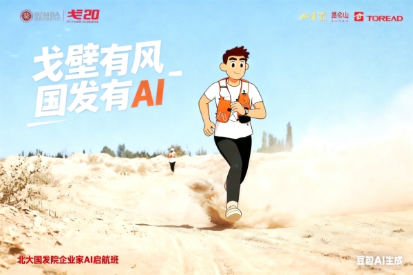 哎,不能再讲了,再讲有同学就赶不上飞机了。最后,还是要打一个广告。大家都知道,今年我启动了面向企业家和管理者的北大国发院“企业家AI启航班”,首期班招生很成功。这次戈赛来了四个AI班的同学,全部顺利完赛,特别是邹德鹏,平时也不怎么运动,总共只训练了一次就走完了B队120公里。德鹏,以后咱俩分工一下吧:我负责忽悠新戈友上C队,你负责忽悠老戈友上B队。