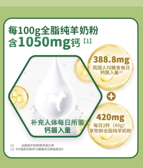 在消费者对"零添加""纯净营养"需求激增的当下,央牧旗下纯羊奶粉以“回归天然”为产品理念,构建了差异化竞争力,配料表仅含生羊乳,真正做到0蔗糖、0香精、0防腐剂,精准契合控糖人群、健身爱好者及家庭用户的健康需求。核心奶源来自秦岭北麓黄金奶源带——年均1500小时日照、2000+小时放牧时长,孕育出蛋白质含量较普通奶山羊高18%的优质奶源,每100g羊奶粉含1050mg原生高钙,达到国家标准三倍以上。