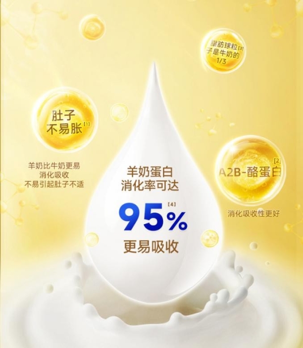 随着《中国居民膳食营养素参考摄入量》及膳食指南不断倡导“优质蛋白多元化”,羊奶的营养价值进一步获得科学界的关注与验证。研究表明,羊奶脂肪球颗粒直径仅为牛奶的三分之一,消化吸收速度显著优于牛奶——可在20分钟内完成消化(牛奶通常需120分钟),吸收率高达90%以上,央牧乳业依托羊奶特性推出高适配性产品,聚焦三岁以上、消化功能偏弱的老年人、术后恢复患者等群体。