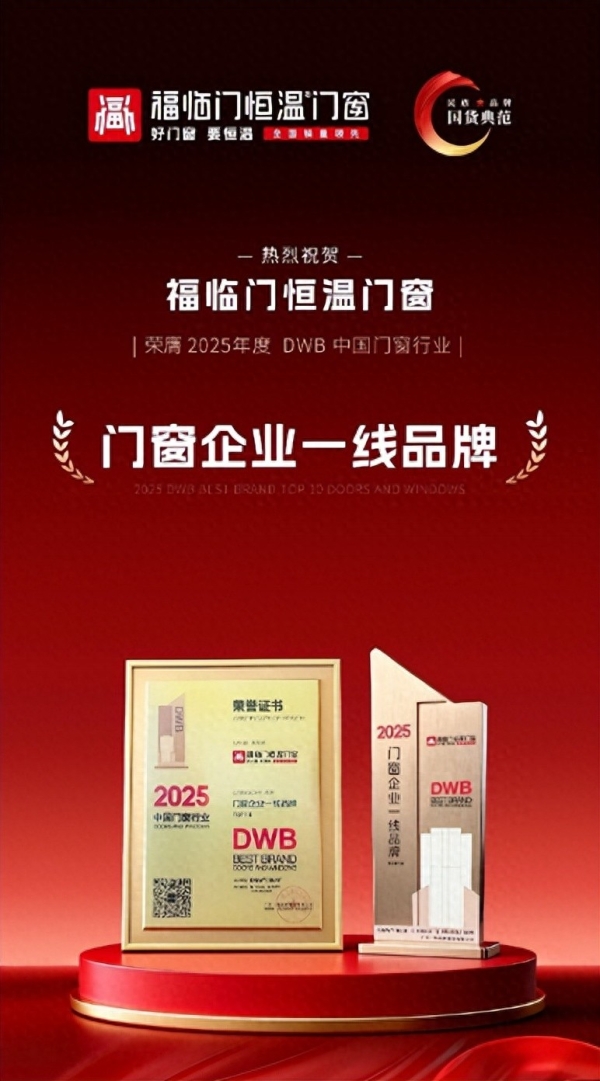 近日,福临门恒温门窗在2025年度DWB中国门窗行业评选中脱颖而出,荣获“门窗企业一线品牌TOP 10”称号。这一殊荣不仅是对福临门恒温门窗过去努力的高度认可,也标志着其在行业内的领先地位得到了进一步的巩固和提升。