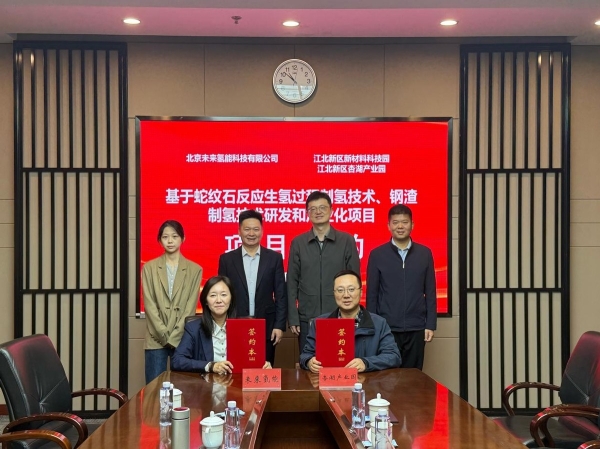 基于蛇纹石反应生氢过程制氢技术、钢渣制氢技术研发和产业化项目由北京市首批氢能重点项目单位——北京未来氢能科技有限公司投资设立,标志着国际首个基于蛇纹石生氢过程的钢渣制氢专业中试研发实验平台正式落地,为新区氢能产业高质量发展注入强劲动能。作为国家高新技术企业、北京专精特新企业,北京未来氢能科技有限公司深耕氢能领域多年,组建国际一流专家团队,凭借多年研发积累形成全自主知识产权的新一代AEM电解水制氢技术体系,拥有催化剂、电极、电解槽等多类目专利40余项,参与起草行业标准20多项,已获评"金氢奖-年度AEM电解槽领军企业"等多项殊荣。此次设立的未来氢源(江苏)科技有限公司,联合法国法国格勒诺布尔-阿尔卑斯大学、中国石油大学,聚焦天然氢勘探开发、钢渣制氢技术突破,打造氢气制备创新示范载体。