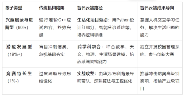 资源错配:多数机构强推C++竞技课程,但70%学生因枯燥语法和数学逻辑不足中途放弃,浪费资金与时间。