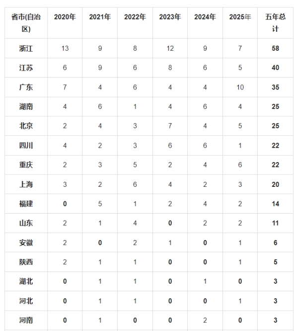 全国23省,4直辖市,5自治区,2特别行政区(共34)最近6年(从2020~2025)实际保送清北名额。