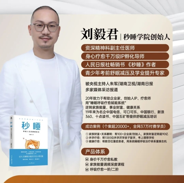 大家好,我是毅君,精神科副主任医师、中国【觉醒睡眠】系统 秒睡学院创始人、身心疗愈千万级IP孵化导师。