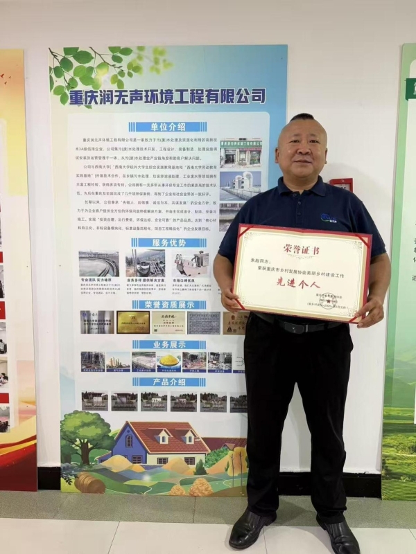 重庆润无声环境工程有限公司是一家专注于农村生活污水治理的小微技术型企业,始终将技术研发与乡村实际需求深度融合。2025 年,在协会的带领及协会机关各部门的支持指导下,重庆润无声环境工程有限公司总经理朱彪带领全体员工共同拼搏,企业顺利达成各项工作目标,斩获诸多亮眼成绩,具体情况如下: