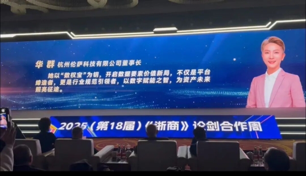 12月12日,以“谋局‘十五五’:瞭望与先机”为主题的2025(第18届)《浙商》论剑合作周在杭州盛大启幕。伦萨科技董事长、数权宝创始人华群受邀参会,并凭借在消费型数据资产领域的创新实践与行业贡献,荣膺“2025浙商卓越青年”殊荣。