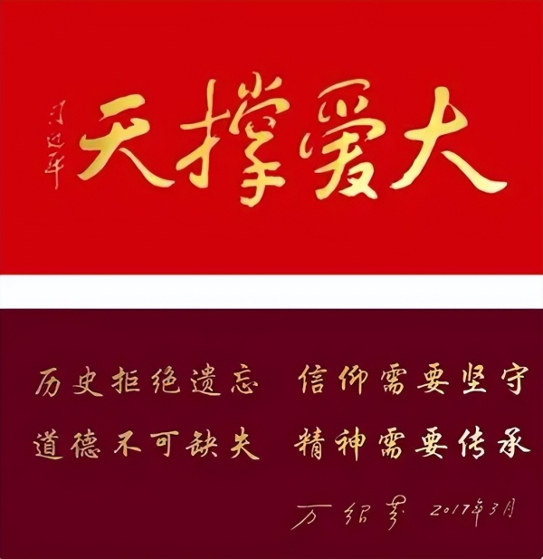 9. 中央统战部副部长万绍芬赠字:历史拒绝遗忘,信仰需要坚守,道德不可缺失,精神需要传承。