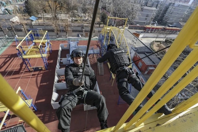 北京冬天的寒冷抵挡不住特警队员的训练热情。冬日特训,现场震撼,令观者血脉偾张。