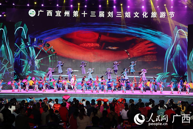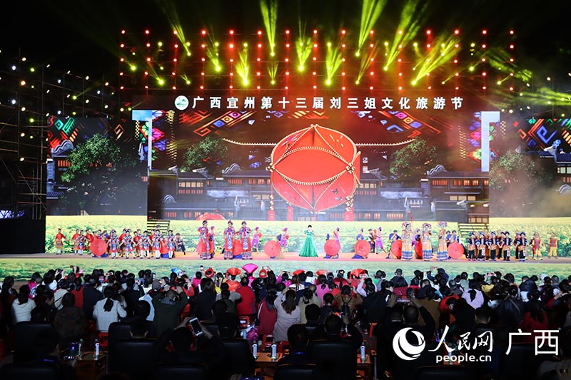 广西宜州第十三届刘三姐文化旅游节文艺汇演。人民网 付华周摄