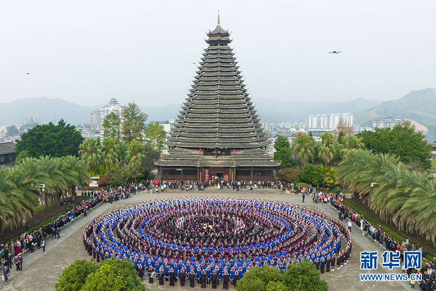 近日,在广西柳州市三江侗族自治县,29支多耶队欢聚一堂,举行侗族多耶节,千人“踏歌而舞”,尽展侗乡非遗风采,欢唱百里侗乡的新生活。