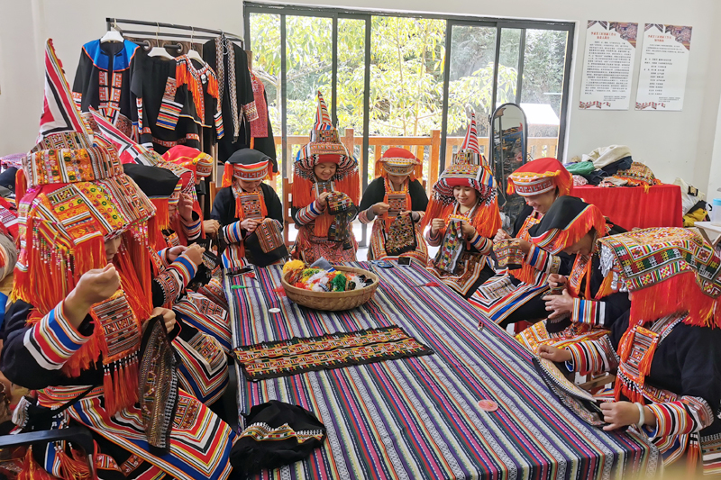 李素芳团队坚持“前店后村”模式传承非遗项目(瑶族服饰)。