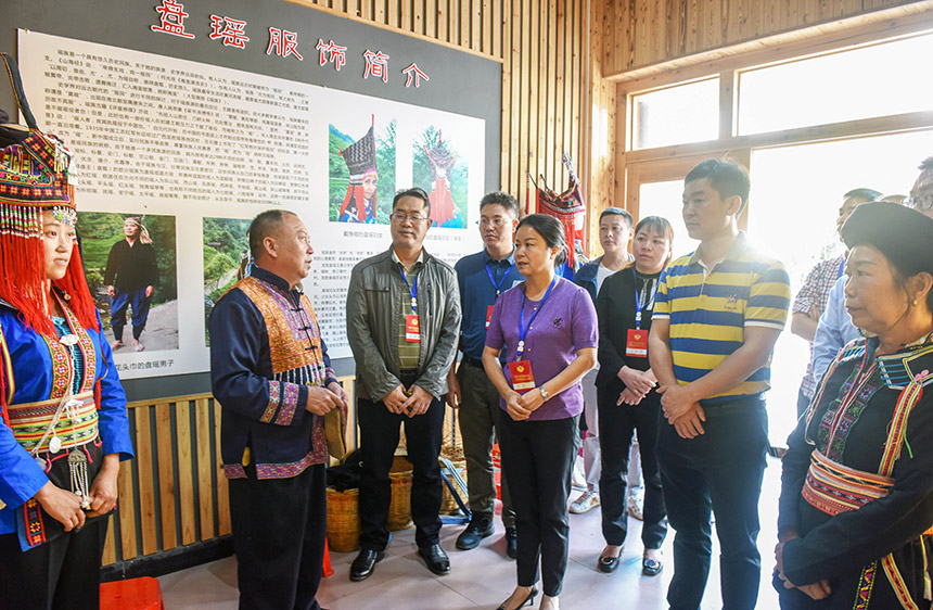 江底乡盘瑶服饰制作技艺传习基地调研现场。