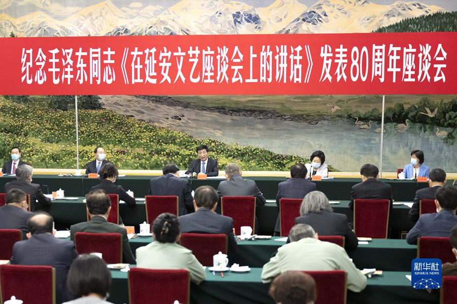 5月23日,纪念毛泽东同志《在延安文艺座谈会上的讲话》发表80周年座谈会在北京举行。中共中央政治局常委、中央书记处书记王沪宁出席会议并讲话。新华社记者 燕雁 摄