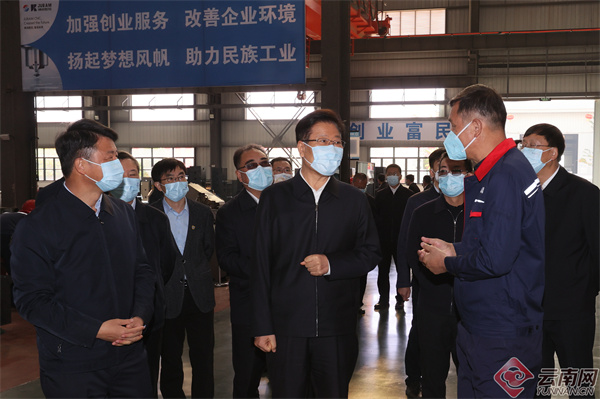 11月20日,全国人大常委会副委员长、党组成员张春贤一行在楚雄彝族自治州禄丰市碧绿城镇禄丰速控产业创业孵化示范园调研。记者 顾彬 摄