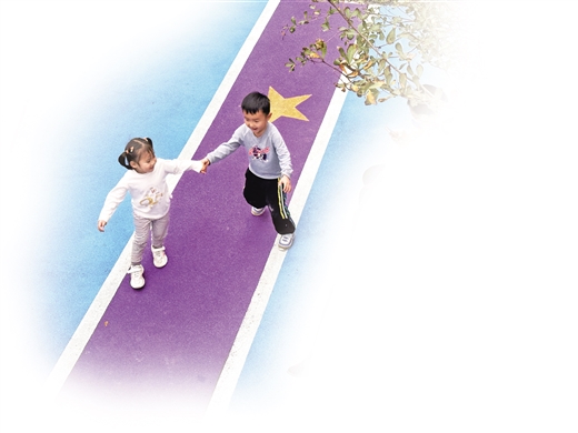 2月13日下午,两名小朋友在自家楼下的小公园游玩。邹财麟 摄