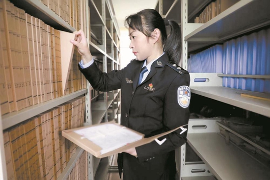 黄春芳查找案件资料。记者 李香晖 通讯员 林 波 摄