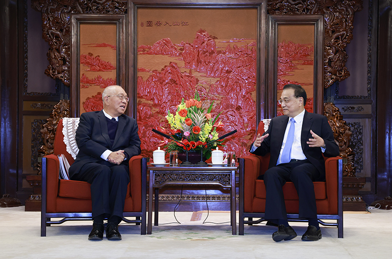 2月24日,国务院总理李克强在中南海紫光阁会见国际著名数学家丘成桐先生。