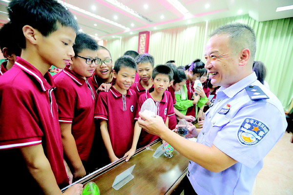 民警走进校园通过生动的案例和展示毒品标本等形式向学生普及禁毒知识。陈静摄
