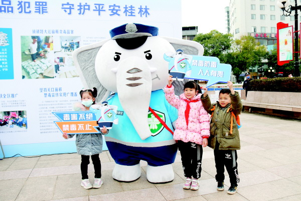 桂林市禁毒办利用禁毒卡通形象“象警官”开展禁毒宣传。桂林市禁毒办供图