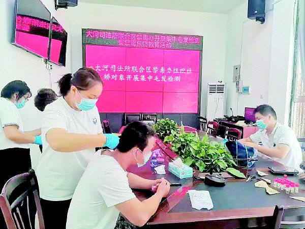 禁毒社工为吸毒人员提取毛发检测样品。桂林市禁毒办供图