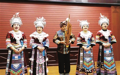 宣讲会上,融水县山歌协会会员身着民族盛装,吹奏芦笙,以一首名为《欢呼党的二十大》的山歌,唱响了党的二十大精神主旋律。融水苗语宣讲员马忠平则以《弘扬民族优秀传统文化促进大苗山各民族团结》为题,用苗语向参会人员介绍了融水独特的民族风情和风俗。