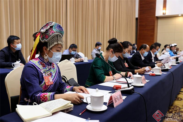 云南省代表团举行小组会议 记者 雷桐苏 摄