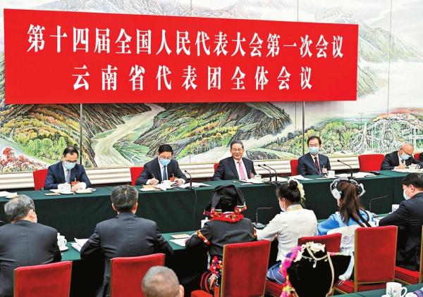 3月5日,中共中央政治局常委李强参加十四届全国人大一次会议云南代表团的审议。新华社记者殷博古摄