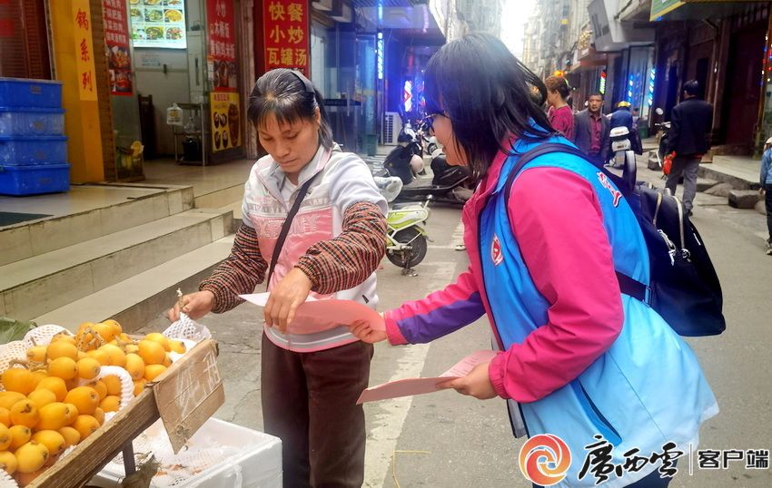 志愿者在发放创城宣传单。黄吴芳晓 摄