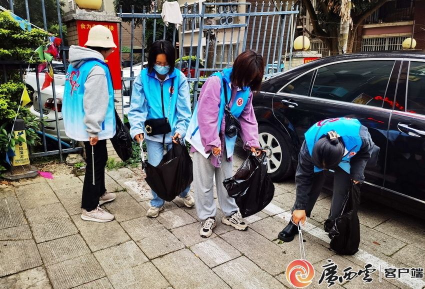 志愿者在清理路面的垃圾。黄吴芳晓 摄