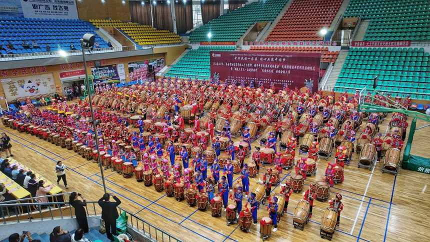 马山县杨帆鼓队《舞龙(组合鼓)》。任红伟摄