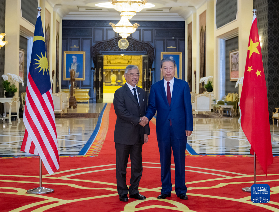 应马来西亚国会下议院议长佐哈里邀请,全国人大常委会委员长赵乐际5月18日至20日对马来西亚进行正式友好访问。这是5月19日,赵乐际在吉隆坡会见马来西亚最高元首阿卜杜拉。