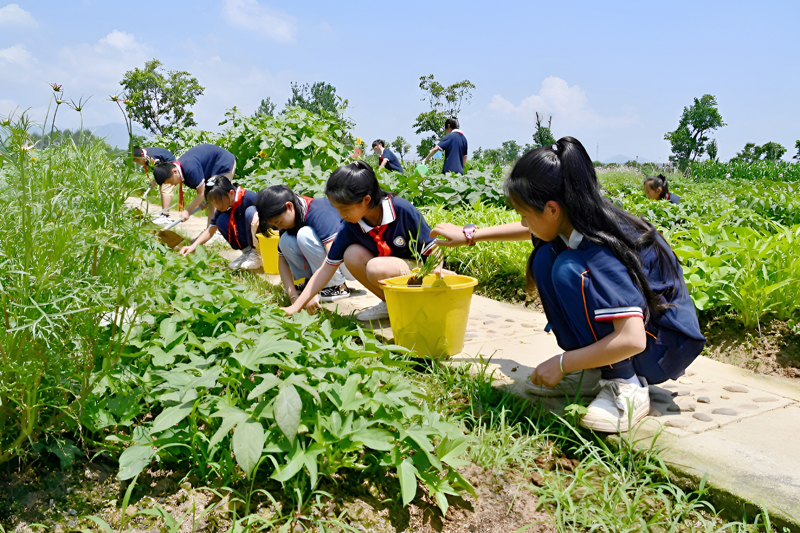 2021年秋季学期,钟山镇第七小学积极探索劳动教育新途径,投资8万多元建成总面积约1800多平方米的校内劳动教育实践基地——“七彩种植园”,倾力打造贺州市劳动教育示范校。该校将社会主义核心价值观融入劳动教育全过程,通过实施“管理育人、课程育人、实践育人、协同育人、评价育人”机制,“五措”并举构建“以劳养德,以劳增智,以劳健体,以劳育美”的劳动教育校本课程,涵盖了日常生活劳动、农业生产劳动、志愿服务劳动和手工艺劳动四类劳动任务群,为学生量身定制形式多样、内容丰富的劳动实践课程。