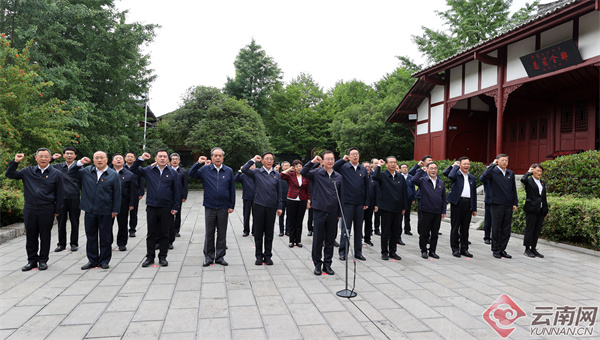 6月5日,参加省领导干部主题教育读书班的全体学员在扎西会议会址,重温入党誓词。记者 雷桐苏 顾彬 摄
