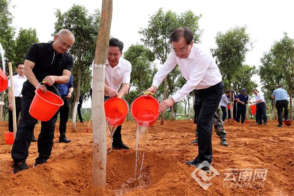 7月3日,省委书记王宁、省委副书记石玉钢、省政协主席刘晓凯等省领导到昆明市官渡区金马街道十里社区大桥村,同当地干部群众一起参加2023年义务植树活动。