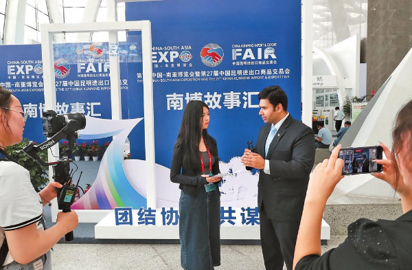 本届南博会开幕式、场馆设计实现政治性、思想性、艺术性的统一,高水平创新搭建了主题国尼泊尔馆、主宾国缅甸馆,获得国内外嘉宾一致好评。坚持传统与新兴并重、线上与线下联动,搭建媒体与参展商、观展群众互动平台“南博故事汇”,开设“南博十年”专栏,推出“南博倒计时”“留学生逛南博”等系列短视频,共26家央媒、13家省内主流媒体、16个州(市)新闻媒体和129个县级融媒体中心,包括印度、巴基斯坦、尼泊尔、孟加拉国、斯里兰卡等南亚国家媒体及美联社、法新社、安莎社等世界知名通讯社在内的80多家外媒宣传报道南博会系列活动。全网南博会相关信息超2.6万条,累计阅读量超2亿次,媒体报道超1700篇,抖音话题“去逛南博会”等累计播放量超5000万次,滚动刊播南博会宣传标语达1.3亿次以上。截至8月20日16时,累计33.53万人次入馆观展,形成了全省人民“逛南博”的热潮。(记者 朱海)