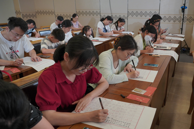 结合历史、艺术和文化等多角度,嘉宾们带领广大读者从多个方面进一步感受《永乐大典》的魅力。读书会还设置了互动问答和临摹体验环节,让读者进一步了解《永乐大典》的装帧形式和书法艺术,掀起活动的一波小高潮。在临摹体验中,现场大小读者轮番上阵。读者们在一研一墨、一笔一画中,不仅切身体会到了《永乐大典》抄书人的艰辛,也深切感悟到了汉字独有的书法之美。