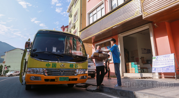 日前,湖北省宜昌市秭归县水田坝乡王家桥村村民胡兴成在家门口签收快递(如图)。水田坝乡利用国家电网公司捐赠的4辆电动公交车,开辟了4条按时发班、覆盖全乡所有建制村的公交线路,有效解决了快递进村、鲜橙出山、游客进出等“最后一公里”问题。