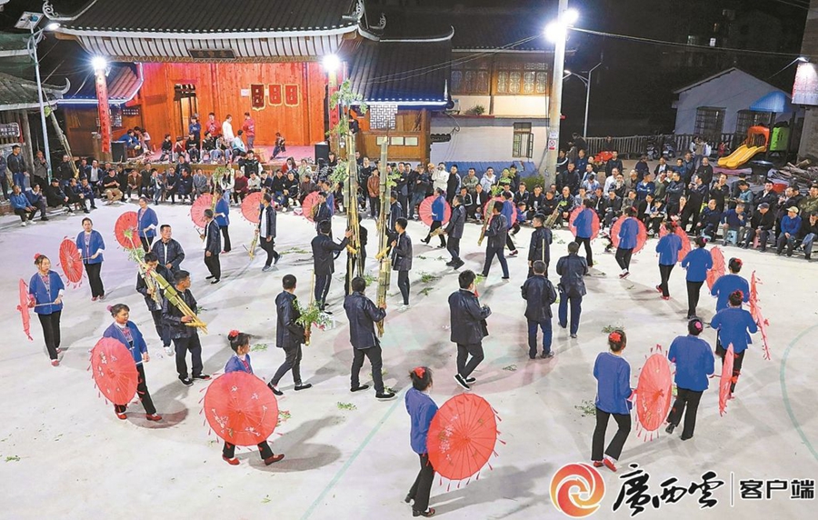 3月25日,柳州三江侗族自治县独峒镇平流村以举办月也活动为契机,加紧芦笙踩堂、赛芦笙等节目的排练,喜迎“广西三月三”到来。 龚普康 梁秀明 摄