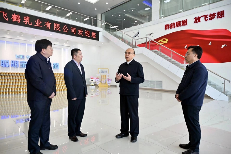许勤在飞鹤乳业有限公司,了解企业生产经营情况,勉励企业坚持创新驱动、市场引领,做精主业、多元发展。