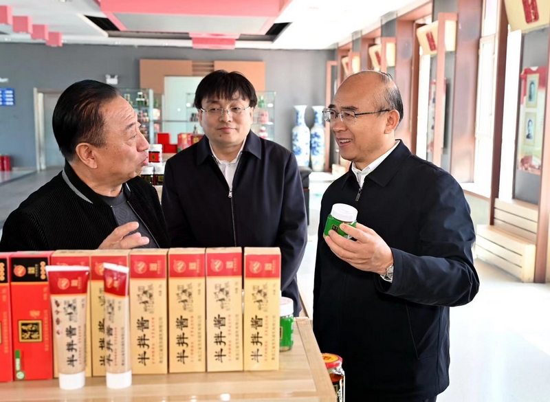许勤来到克东腐乳公司,调研企业生产经营、产品开发等情况。