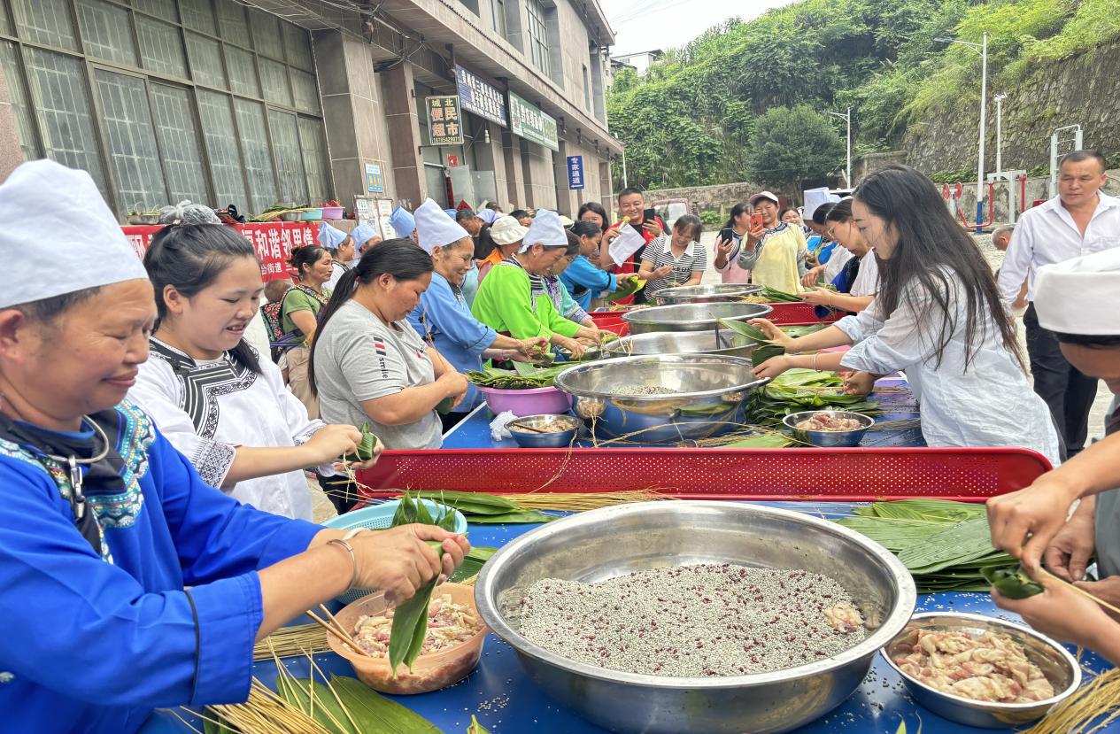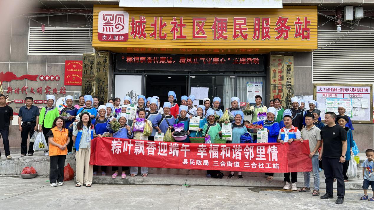 为更好地传承和弘扬中华民族优秀传统文化,让移民社区的少数民族群众欢度一个祥和安康的端午佳节。6月6日下午,在三合街道城北社区两委班子的领导下,三合街道社会工作和志愿服务站携手城北社区便民服务站,链接三都农商银行人和盛世分理处,在城北社区新时代文明实践站开展“粽叶飘香迎端午·幸福和谐邻里情”端午节包粽子活动。