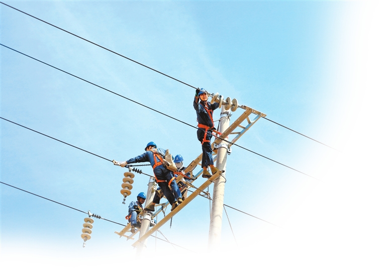 6月11日,温县供电公司职工在一条35千伏线路改造项目中施工。徐宏星 摄