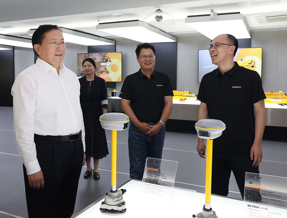 在华测时空智能科创园,王忠林察看产品展示、听取企业生产经营情况介绍。得知企业全力打造无人机、无人船两大平台,积极拓展智慧城市、自动驾驶等新兴领域市场,实现快速增长,王忠林给予充分肯定,要求相关部门加强供需对接服务,支持企业优质产品开拓市场。