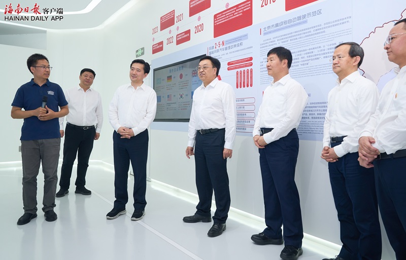 6月14日,海南省党政代表团来到北京市高级别自动驾驶示范区创新运营中心,察看自动驾驶应用场景。