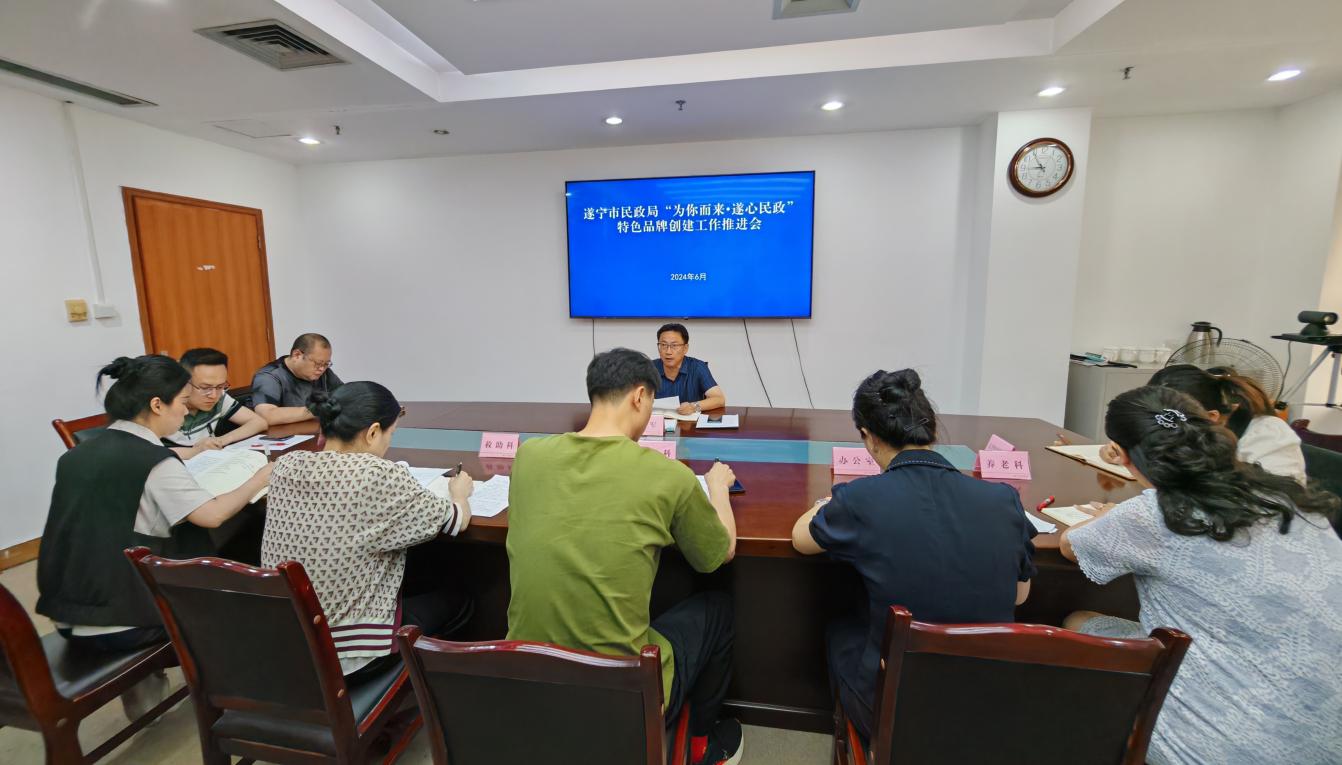 为高质量推进遂宁民政特色品牌建设工作,进一步提升遂宁民政工作的知名度、美誉度、影响力,6月18日,市民政局召开“为你而来•遂心民政”特色品牌创建工作推进会。遂宁市民政局党组成员、副局长彭军主持会议。