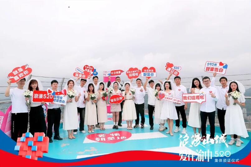 渝中区积极探索“婚登+改革、服务、经济”等新赛道,让青年感知渝中的浪漫与温度。5月20日,“浪漫山城·爱在渝中”520集体颁证仪式在渝中区海拔590米的WFC“云端”举行,10对生活、工作在渝中的新人手捧鲜花、许下誓言,成为“520云端”婚礼的幸福主角。为擦亮“一生520·幸福在渝中”品牌,“七夕”当日,渝中区民政局为登记结婚的新人推出喜结发礼、浪漫婚书、行执手礼、中式场景打卡等特色颁证服务,让新人体验典雅喜庆的传统婚俗魅力。