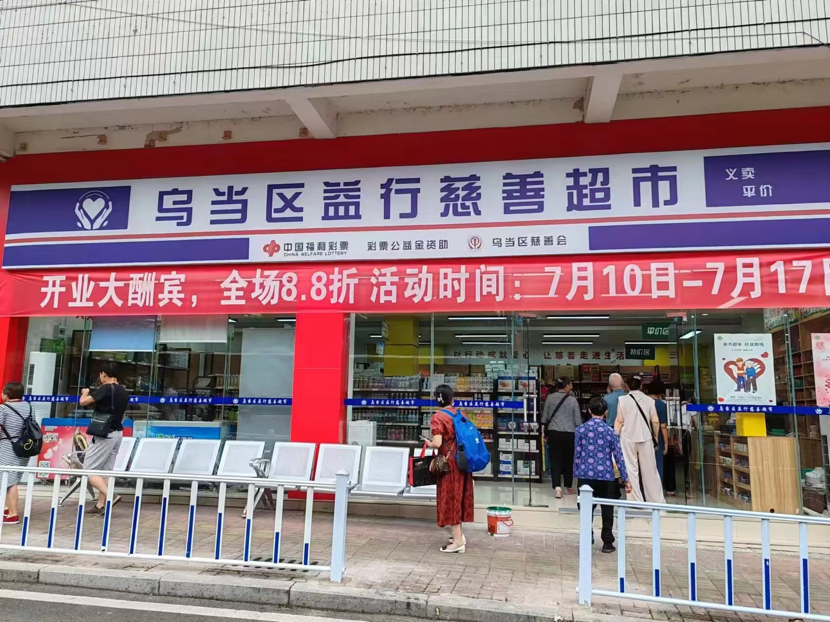 益行慈善超市位于乌当区滨溪南路乌当区民政局一楼,是乌当民政慈善会旗下贵州益行商贸有限公司运营的超市,以“普惠于民、承载爱心”为宗旨,超市内设爱心捐赠区、特价区、平价区、义卖区。爱心捐赠区将会汇聚企业、群众捐赠的爱心物资,最低生活保障对象和特殊困难群众可免费领取;慈善义卖区将企业捐赠或益行商贸自有商品售出后,所得款项营利部分全部捐赠给周边社区的困难户、五保户、孤寡老人、留守儿童等特殊群体。