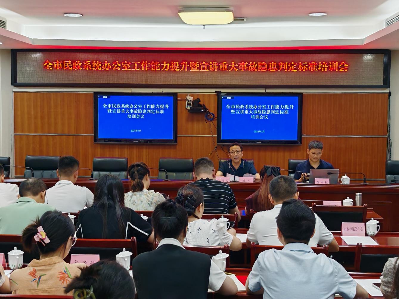 为深入学习贯彻习近平总书记对新时代办公厅工作重要指示精神和深入宣传贯彻实施重大隐患判定标准,促进全市民政系统办公室干部提高政治站位、强化政治担当、提升政治能力、落实政治责任,进一步提高风险隐患排查整治质量,持续推动重大事故隐患动态清零,树牢“民政为民、民政爱民”理念,扎实履行“三基”职责,不断开创民政系统办公室工作新局面。7月15日,全市民政系统办公室工作能力提升暨宣讲重大事故隐患判定标准培训会议召开。市民政局党组成员、副局长彭军主持会议。