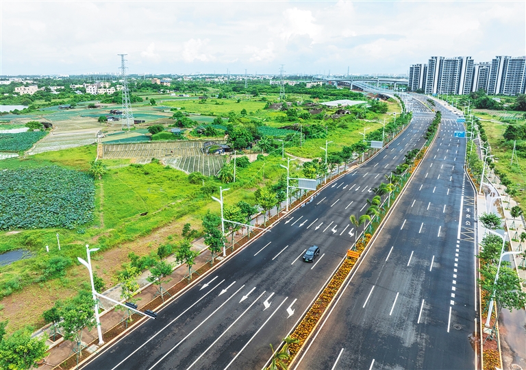 7月16日,航拍海口江东新区海文北路。目前,海文北路项目整体进度完成约95%,正在向完工发起最后冲刺。海文北路连接江东大道与海文高速,建设道路总长2.99公里,建成后将对区域路网结构的完善、周边地块的开发等起到重要作用。文/海南日报全媒体记者 刘梦晓 图/海南日报全媒体记者 李天平