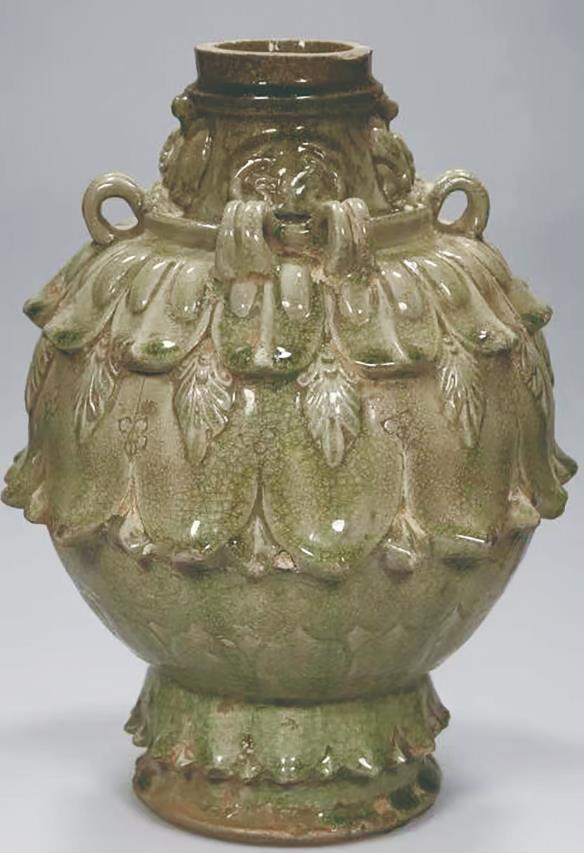 都兰县博物馆馆藏文物——青瓷莲花尊。记者苏烽摄